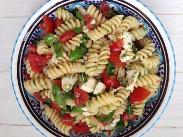 Geen zin om te koken en ook niet in iets warms? Op een hete zomerdag is een koude pastasalade altijd een heerlijke keuze. Met verse ingrediënten tover je snel een smakelijke pastasalade op tafel waar het hele gezin van geniet. Dit recept is geïnspireerd op de klassieke salade Caprese, met tomaat, basilicum en buffelmozzarella als hoofdingrediënten.